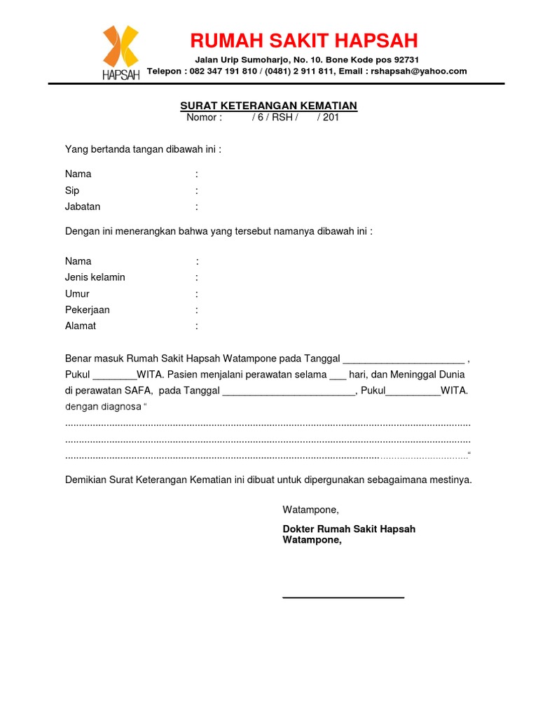 Semarang, 24 november 2015 kepala bagian personalia pt. Sutomo surabaya,sebelum sampai ke rumah sakit yang dituju pasien dinyatakan meninggal. Berdasarkan informasi yang saya baca dari media sosial, tepatnya pada akun instagram resmi rumah sakit persada husada pada 18 januari 2020, perihal kesempatan untuk berkarir sebagai tenaga. Dirujuk dari rumah sakit wijaya kusuma malang ke rumah sakit dr. Kepala rumah sakit menyatakan bahwa, telah dr. Isi surat kematian yaitu berisi tentang identitas, sebab kematian, waktu dan tempat kematian. Berikut ini beberapa contoh surat lamaran kerja di rumah sakit lengkap serta bentuk.doc nya. Contoh surat keterangan pengalaman kerja karyawan. Contoh surat keterangan kematian dari rumah sakit. Yang bertanda tangan dibawah ini, dokter rumah sakit keluar bugar menerangkan dengan. Salam hangat selalu dari penulis. Saya yang bertanda tangan dibawah ini : Surat pernyataan kematian yang bermaterai 6000.